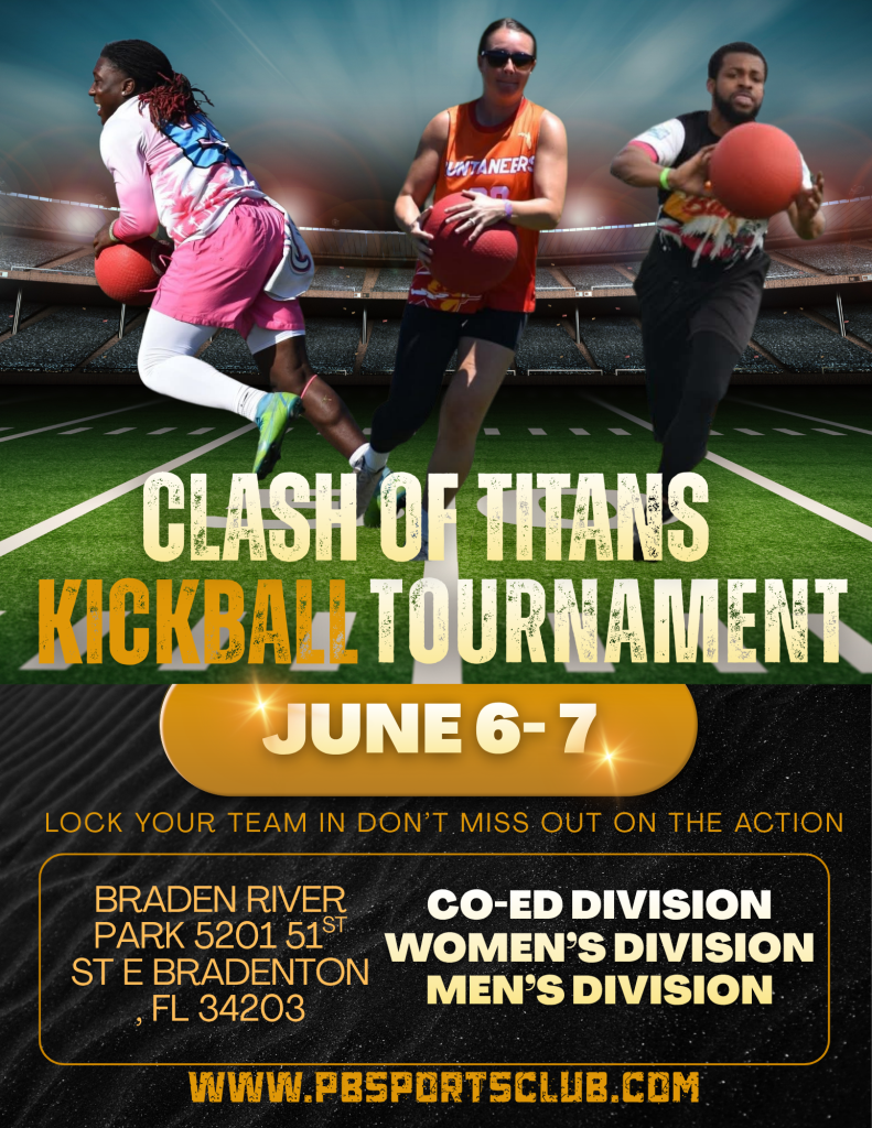 CLASH OF TITANS Kickball Tournament Tournament Info: 📅 Tournament Dates:Saturday, June 6 & Sunday, June…